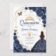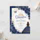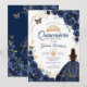 Quinceanera Navy Blue Floral Dress Gold Invitation