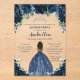 Quinceanera Navy Blue Floral Silver Brown Princess Acrylic Invitations