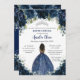 Quinceañera Navy Blue Floral Silver Brown Princess Invitation