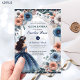 Quinceañera Navy Blue Peach Silver Dress Flowers Acrylic Invitations
