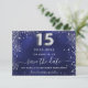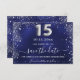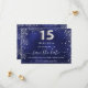 A trendy Save the Date for a Quinceañera, 15th birthday party. A navy blue background decorated with faux silver glitter, sparkles. The blue color is uneven. Personalize and add a date and name/age. The text: Save the Date is written with a large trendy hand lettered style script. Number 15 with a silver balloon style font.