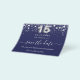 A girly and trendy Save the Date for a Quinceañera, 15th birthday party. A navy blue coloured background. Decorated with faux silver stars. The text: Save the Date is written with a large trendy hand lettered style script. Number 15 is written with a balloon style font.