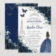 Quinceañera Navy Floral Paris Eiffel Princess Gown Invitation