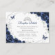 Navy silver and white floral Quinceanera reception details enclosure cards. Features, script font, silver butterflies, watercolor roses and tiara. Perfect for an elegant princess style glam celebration. Personalize with your own details.