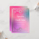 This modern quinceañera invitation features a fun pink, purple, and blue gradient background, papel picado inspired frame in faux silver foil with elegant typography in white. This design is festive, feminine, and modern!