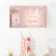 A banner for a girly and glamourous Quinceañera party. A faux rose gold metallic looking background with an elegant faux rose gold, pink glitter drips, paint drip look. Add your own photo of the birthday girl, rose gold glitter as a frame. The text: Welcome to, and a name written in dark rose gold with a large modern hand lettered style script.