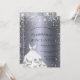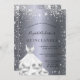 A modern, stylish and glamourous invitation for a Quinceañera, 15th birthday party. A dark faux silver looking background with faux glitter dust and a dress. The name is written with a modern hand lettered style script. Personalise and add your party details.