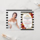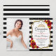 Quinceanera party invitation with your photo. Features black white stripes, script font, red roses, sunflowers, tiara and confetti. Classy black white red design with faux glitter gold. Perfect for an elegant celebration.