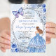 Quinceanera Pastel Blue Flowers Silver and Elegant Butterfly Invitation