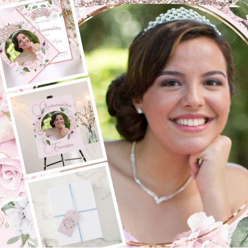 Blush pink with a tiara and watercolor roses is the basis of this Quinceanera design.