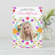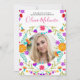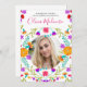 Photo Quinceanera Invitation with Mexican fiesta flowers, for your daughter's 15th Birthday celebration. This floral Quinceañera theme features colourful Mexican folk art flowers in red, pink, purple and yellow on a white background. The back of the card has a floral bouquet made from the same fiesta flowers. The template is set up ready for you to customise the card with all your personal details for your Mexican Fiesta Quinceanera party. Please browse our store for matching and coordinating items.