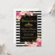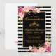 Elegant Watercolor Pink Blush Floral, Gold Crown, Black and White Stripes Quinceanera Invitation Card