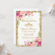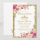 Quinceanera Pink Floral Gold Glitter Crown Invite