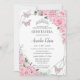 Quinceañera Pink Floral Princess Silver Butterfly Invitation