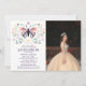 Quinceañera Pink Purple Butterfly Photo Floral Invitation