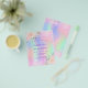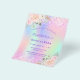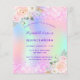 A girly and feminine Quinceañera, 15th birthday party invitation. On front: A rainbow, holographic coloured background in purple, pink, mint green, rose gold. Decorated with blush pink faux glitter, sparkles. Personalise and add a name and party details. The name is written with a hand lettered style script, purple coloured letters.