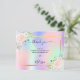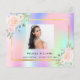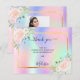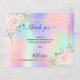 A girly and elegant thank you card with photo. A rainbow, holographic background in pink, purple, blue and mint green, decorated with flowers. Personalise and add your thank you note.