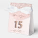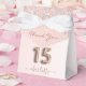 Elegant, classic, glamourous and girly for a Quinceañera, 15th birthday party. Blush pink gradient background. Decorated with rose gold drips, paint dripping look. Personalise and add a name. With the text: Thank You plus the birthday girls name. The name is written with a modern dark rose coloured hand lettered style script with swashes. Number 15 is written with a balloon style font.
