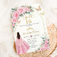 Quinceañera Pink Roses Floral Brunette Girl Gold Invitation