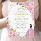 Quinceañera Pink Roses Floral Gold Princess Crown Invitation