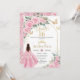 Quinceañera Pink Roses Floral Tan Brown Girl Gold Invitation