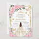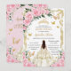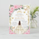 Quinceañera Pink Roses Floral White Dress Princess Invitation
