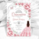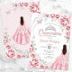 Pink, silver and white Quinceanera celebration invitation. Features brunette girl in ball gown dress, script font, butterflies, watercolor roses and tiara. Perfect for an elegant princess style glam celebration. Personalise with your own details. Printed Zazzle invitations or instant download digital printable template.