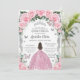 Quinceañera Princess Pink Floral Vintage Silver Invitation
