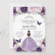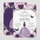 Quinceañera Purple Floral Butterflies Silver Tiara Invitation