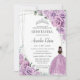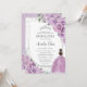 Quinceañera Purple Floral Princess Silver Birthday Invitation