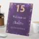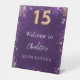 Quinceanera purple glitter sparkles welcome pedestal sign
