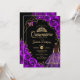 Purple black and gold Quinceanera celebration invitation. Features brunette girl in ball gown dress. script font, gold butterflies, watercolor roses and tiara. Perfect for an elegant princess style glam celebration. Personalize with your own details. Printed Zazzle invitations or instant download digital printable template.