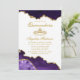 Modern Elegant Watercolor Purple and Gold Marble Agate Geode Quinceanera Invitation. Gold Script. Gold Crown.