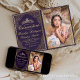 Modern stylish purple and gold invitation with gold dust on with a gold ink pour effect (the gold is a digital effect, not real foil!) and modern calligraphy. Classy and elegant, simple and modern invitation.