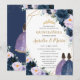 Quinceañera Purple Lilac Navy Blue Floral Twins Invitation