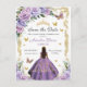 Quinceañera Purple Lilac Rose Floral Gold Princess Announcement Postcard