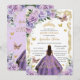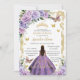 Quinceañera Purple Lilac Rose Floral Gold Princess Invitation