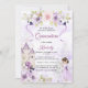 Quinceañera Purple Roses Floral Silver Princess Invitation