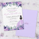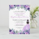 Tiara Watercolor Rose Floral Purple Quinceanera Invitation. An adorable watercolor purple roses and flowers mixed with green leaves and foliage sets the scene for this Quinceañera party theme. A simple, but whimsical look with a variety of purple hues. A mix of classic serif fonts and a beautiful script typography make this both elegant and fun. A purple sparkle princess tiara sparkles up top her head, and on back, as well as an adorable girl with a purple sparkling dress fit for a princess. You can change out all of the font colours to make it more colourful or vibrant if you want. You can also change the background and back of invitation colour to anything you want. Watercolor Floral Purple Quinceanera Invitation With Purple Roses Princess Glitter Dress Tiara.
