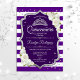 Features stripes, script font, roses, tiara and confetti. Classy purple design with faux glitter silver. Perfect for an elegant glam celebration.