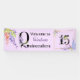 Personalised welcome banner for your Quinceanera birthday celebration. This elegant and pretty design features gorgeous watercolor wisteria flowers in shades of purple, lavender, pink and mauve with a little bit of greenery. Quinceanera has a floral letter Q and the number 15 is also embellished with flowers and set in a gold frame. The wording reads "welcome to [your name's] Quinceanera" in bold lettering and purple handwritten script typography. Please browse our store for matching invitations, favour tags, labels and party decor.