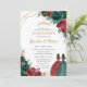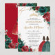 Quinceañera Red Emerald Green Floral Twins Gold Invitation
