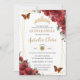 Quinceañera Red Floral Gold Butterflies QR RSVP Invitation