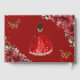 Red floral quinceanera guest book featuring a lovely brown girl in a red ball gown, beautiful vibrant red flowers, butterflies and gold elements.