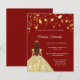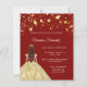 Quinceanera red gold dress stars invitation