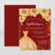 Quinceanera red gold glitter dress roses invitation postcard