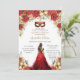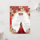 Quinceañera Red Gold Roses Floral Masquerade Ball Invitation