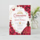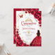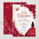Quinceanera Red Roses Dress Gold Invitation