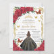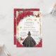 Quinceañera Red Roses Floral Black Dress Princess Invitation