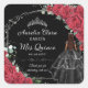 Quinceañera Red Roses Floral Black Dress Silver Square Sticker